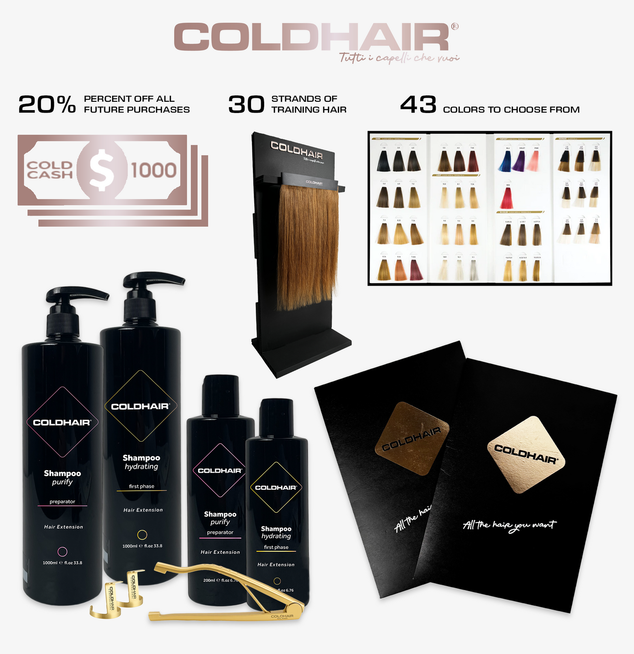 instructional videos: Adhesive Line, Adhesive Strand, Adhesive Invisible, Hair on Hair ($595 Value) - 1000 ColdCash Rewards ($100 Value)